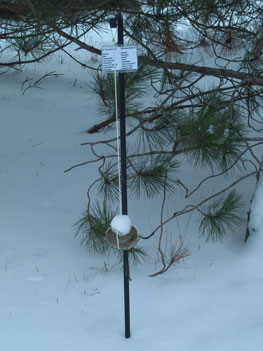 Our friend Jack Mayer gave us this weather station and it proved to be very accurate. The chart at the top of the pole states that if the stone is white, it's snowing. We received the first snow of the season in late November.