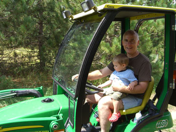 Grandpa Paul was delighted to introduce his grandson, Wes, to the workings, and pleasures of driving the John Deere tractor.